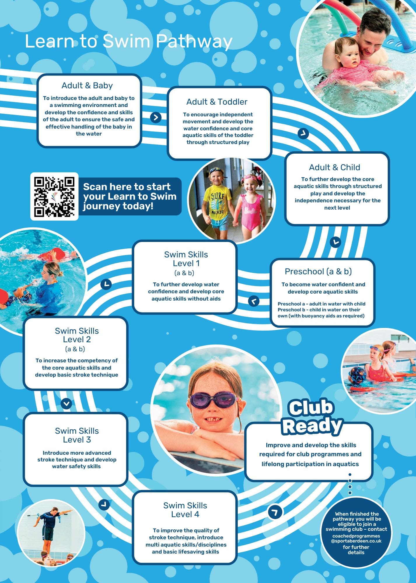 - Progressive Pathway: From Swim Skills 1 to Club Ready – your child will develop the confidence that learning to swim can bring